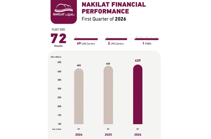 Qatar Gas Transport Company (Nakilat) achieved a net profit of QAR439 million ($120.43 million) for the first quarter ended March 31, 2026, ...