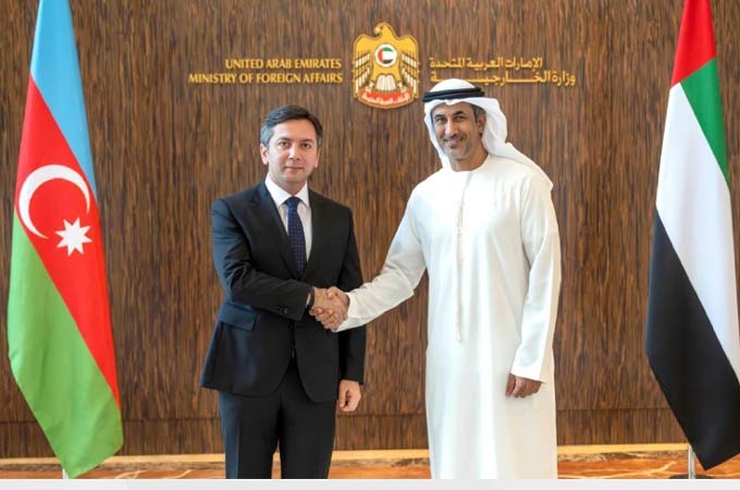 Saeed Al Hajeri, UAE's Minister of State, and Yalchin Rafiyev, Deputy Foreign Minister of Azerbaijan, during a previous meeting to discuss CEPA